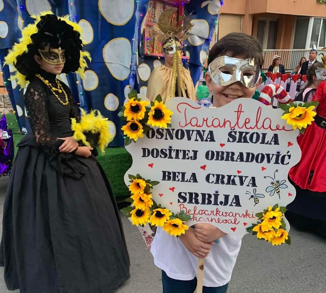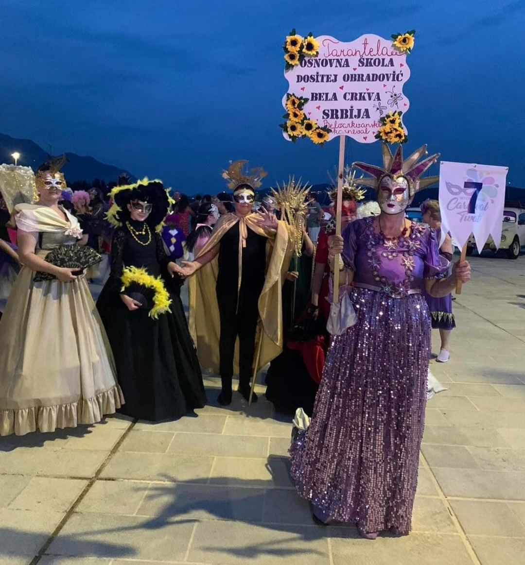 Karnevalska grupa pod nazivom “Tarantela – radost življenja” Osnovne škole “Dositej Obradović” učestvovala je na Međunarodnom karnevalu u Tivtu kao predstavnik Belocrkvanskog karnevala.