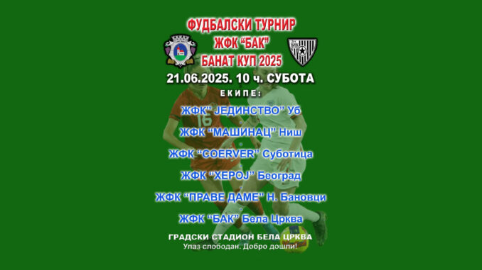 Fudbalski turnir „Banat Kup 2025“ u organizaciji ŽFK „BAK“ održaće se u subotu 21. juna sa početkom u 10 časova, na Gradskom stadionu.