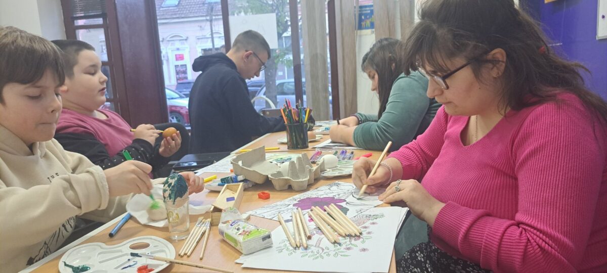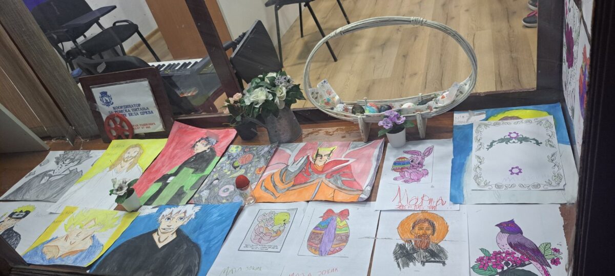 Deca su uz pomoć mama ukršavala uskršnja jaja, crtali su, a svi radovi izloženi su u izlogu Kancelarije za mlade opštine Bela Crkva.