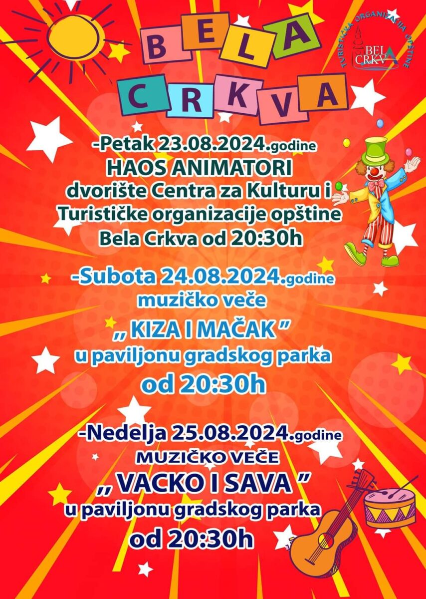 Vikend koji je pred nama obeležiće muzika i animatori. U petak 23. avgusta mališane će zabavljati popularni „Haos animatori“ na dobro poznatoj lokaciji, u dvorištu Centra za kulturu i Turističke organizacije.