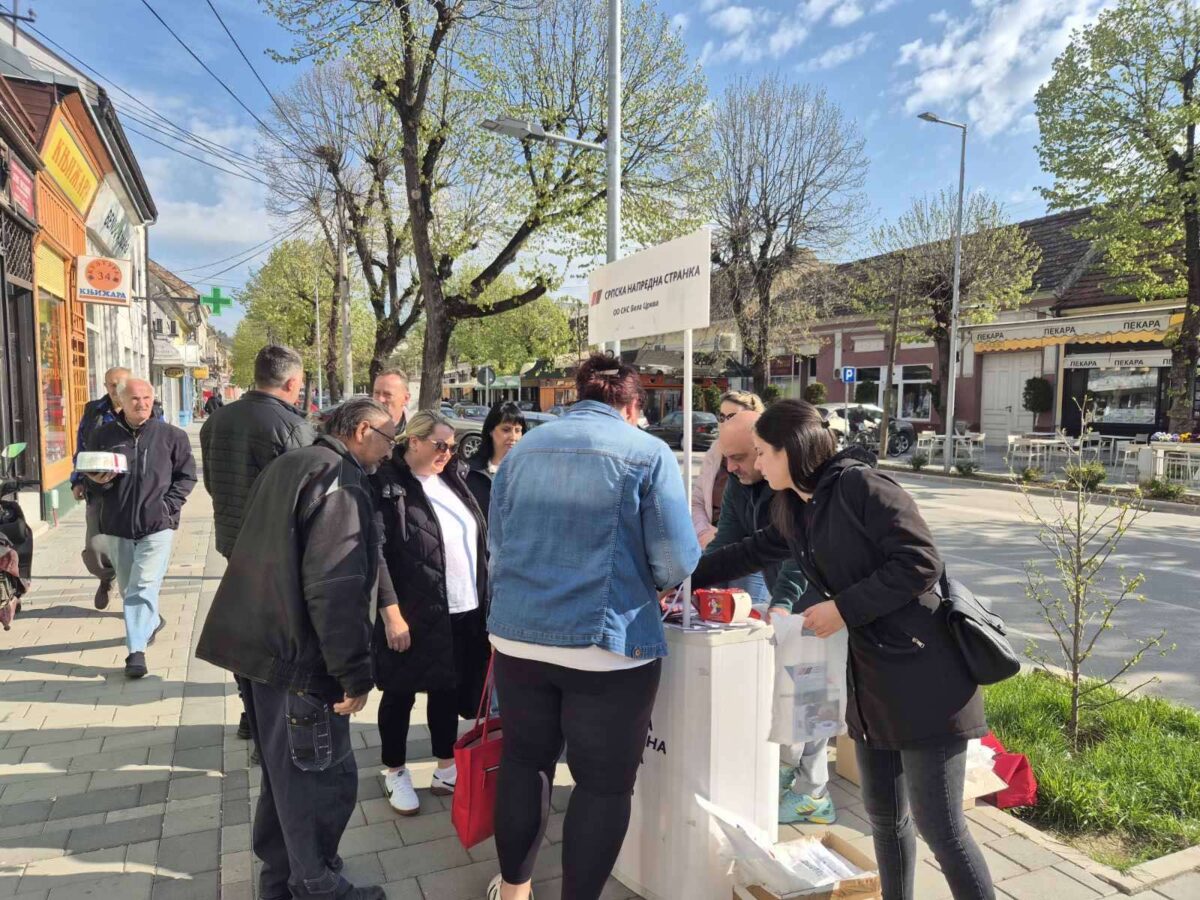 Tokom razgovora, aktivisti su delili promotivni materijal i informator Srpske napredne stranke.