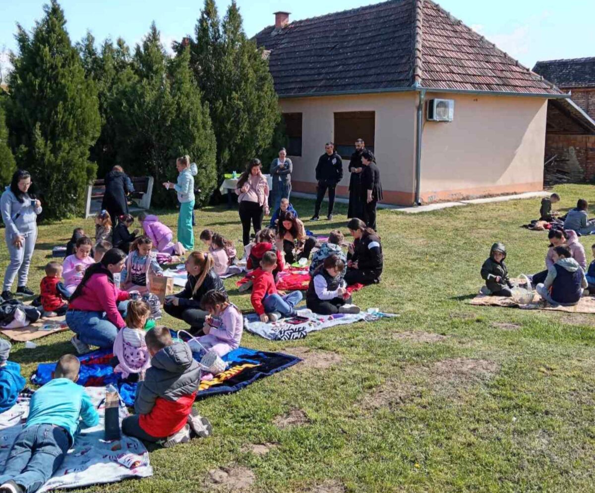 U porti hrama u Banatskoj Palanci tradicionalno je organizovana je uskršnja radionica za decu iz ovog naseljenog mesta.